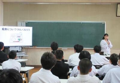 外部の講師の先生を招いて、給食についてお話いただきました。